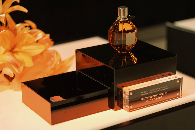 For the launch of Flowerbomb Tiger Lily by Viktor & Rolf, oliFLOR created a bold, immersive floral moment at a private rooftop event in Miami. The fragrance—housed in a fiery orange bottle—set the tone for a sunset-toned palette anchored by vibrant tiger lilies.